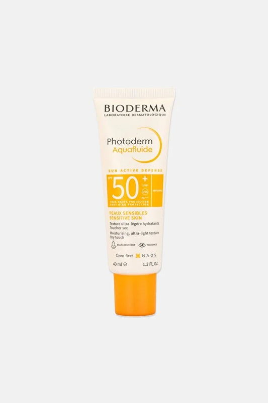 Product details Product description: photoderm aquafluid spf50+ 40 ml Very high sunscreen with fluid texture to help block glare, suitable for all skin types, including sensitive, combination and oily skin High-tech sun active defense™M provides 99.8% dna protection against the sun with its content reinforced against uva rays and effective...