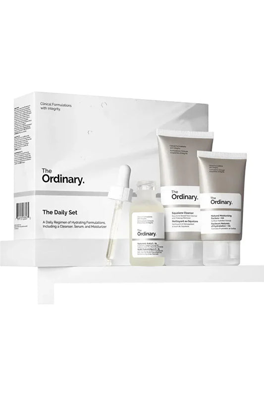 Product details The Daily Set includes three gentle and hydrating formulas suitable for all skin types for daily use across all seasons. The set contains: The Ordinary Squalene Cleanser - a moisturizing facial cleanser designed to effectively dissolve makeup and impurities while leaving the skin smooth. The Ordinary Hyaluronic Acid...