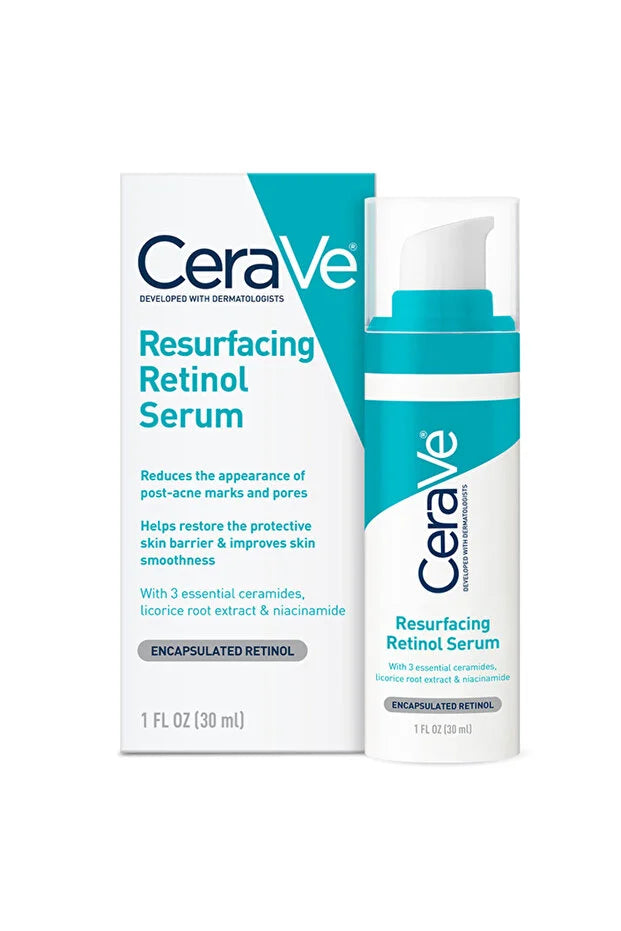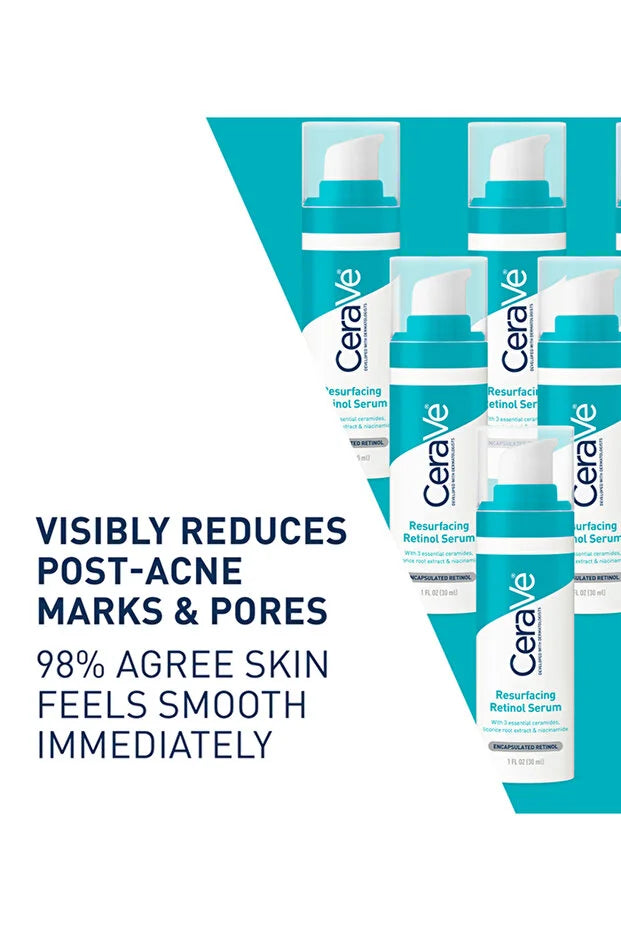 CeraVe Resurfacing Retinol Serum helps smooth your skin's texture by reducing the appearance of post-acne marks, minimizing the look of pores and improving your skin’s surface.